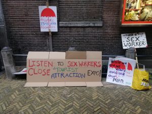 De afgelopen twee weken hebben leden van zowel PIC en PROUD alsook bondgenoten zich verzameld bij het Amsterdam Museum om te protesteren tegen de anti-sekswerk tentoonstelling van “kunstenaar” Jimini Hignett (info over de expositie vindt u hier: https://www.amsterdammuseum.nl/tentoonstellingen/nr-1-tourist-attraction ).